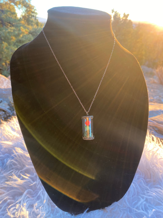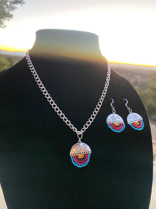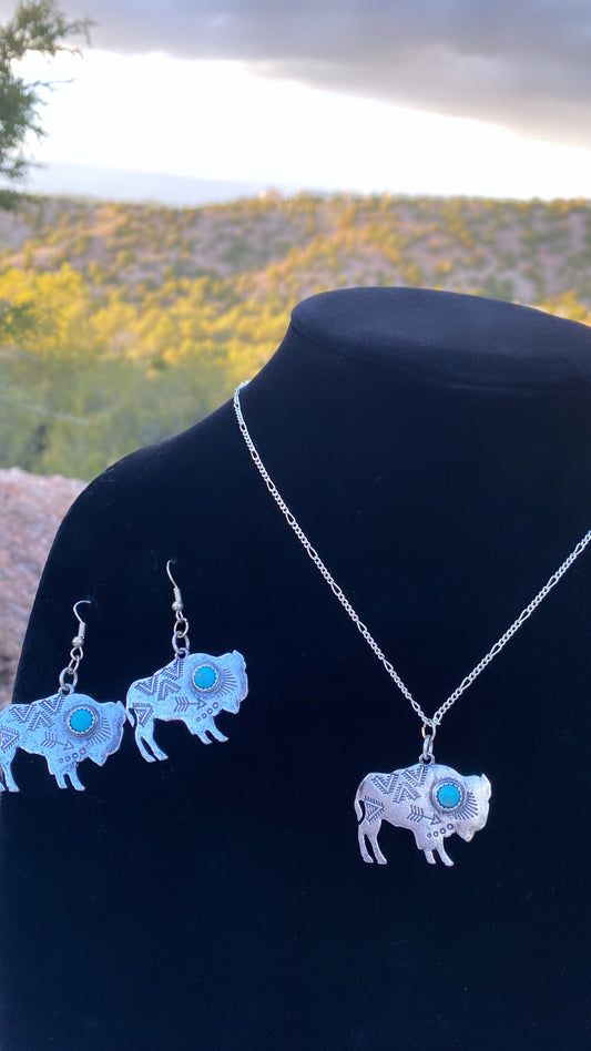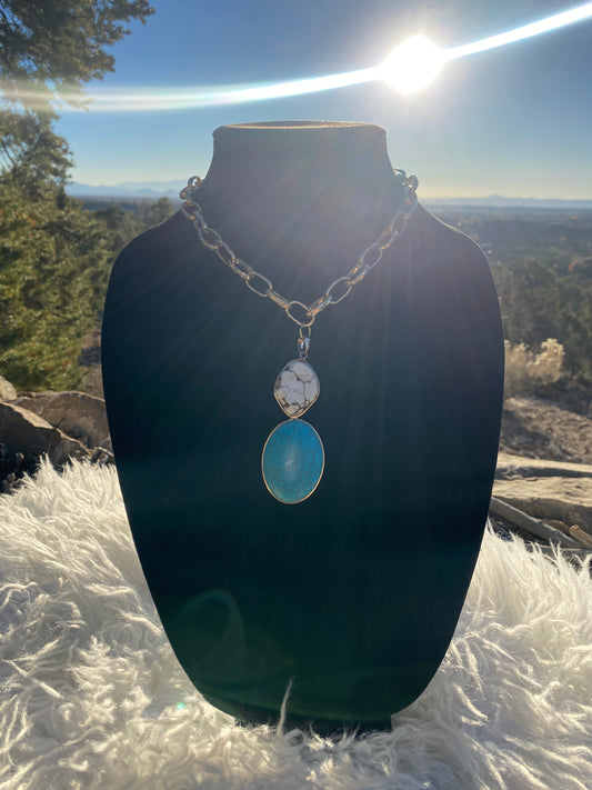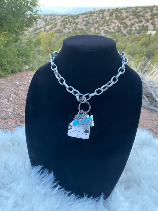 Cow Hide Tag + Turquoise Tribal Pendant Necklace